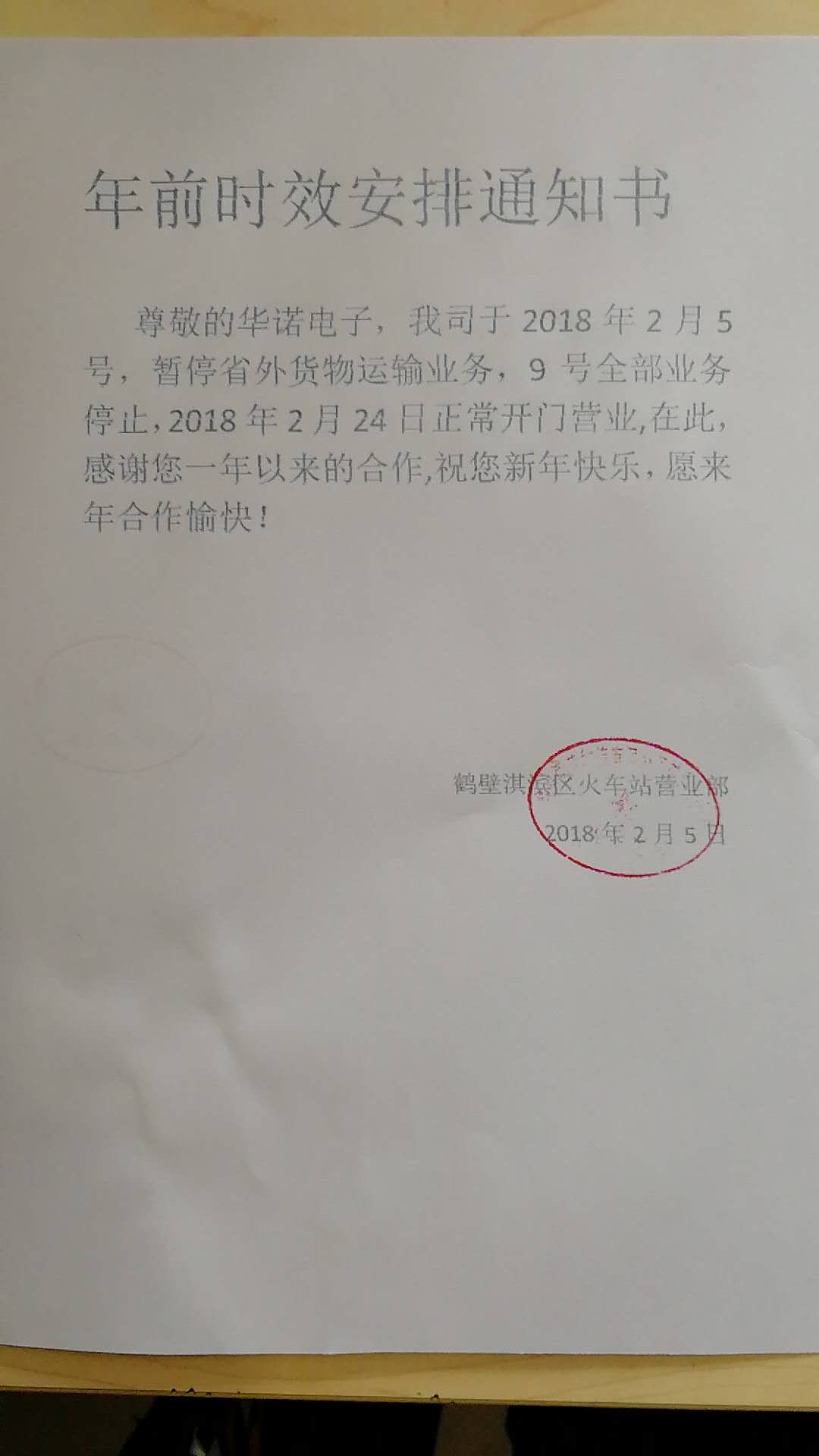以上物流停止接貨當(dāng)日及當(dāng)日以后發(fā)出的貨物,我司不能保證正常的運(yùn)輸?shù)截洉r效。